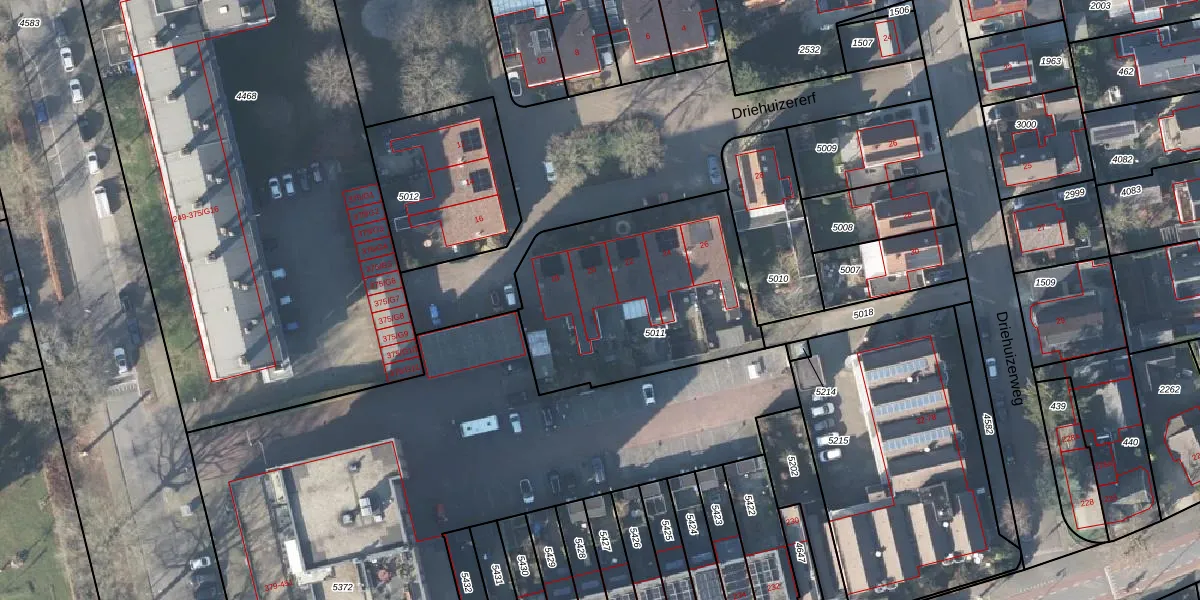 Driehuizererf 20 is gelegen op kadastraal perceel SRN00R5011. Deze kadastrale aanduiding is uniek en wordt gebruikt door het Kadaster om eigendomsrechten en andere zakelijke rechten vast te leggen. Het perceel maakt onderdeel uit van de kadastrale gemeente Hoog Soeren.