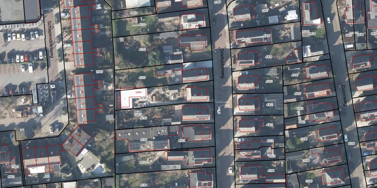 Driehuizerweg 100 is gelegen op kadastraal perceel APD01U4234. Deze kadastrale aanduiding is uniek en wordt gebruikt door het Kadaster om eigendomsrechten en andere zakelijke rechten vast te leggen. Het perceel maakt onderdeel uit van de kadastrale gemeente Apeldoorn.