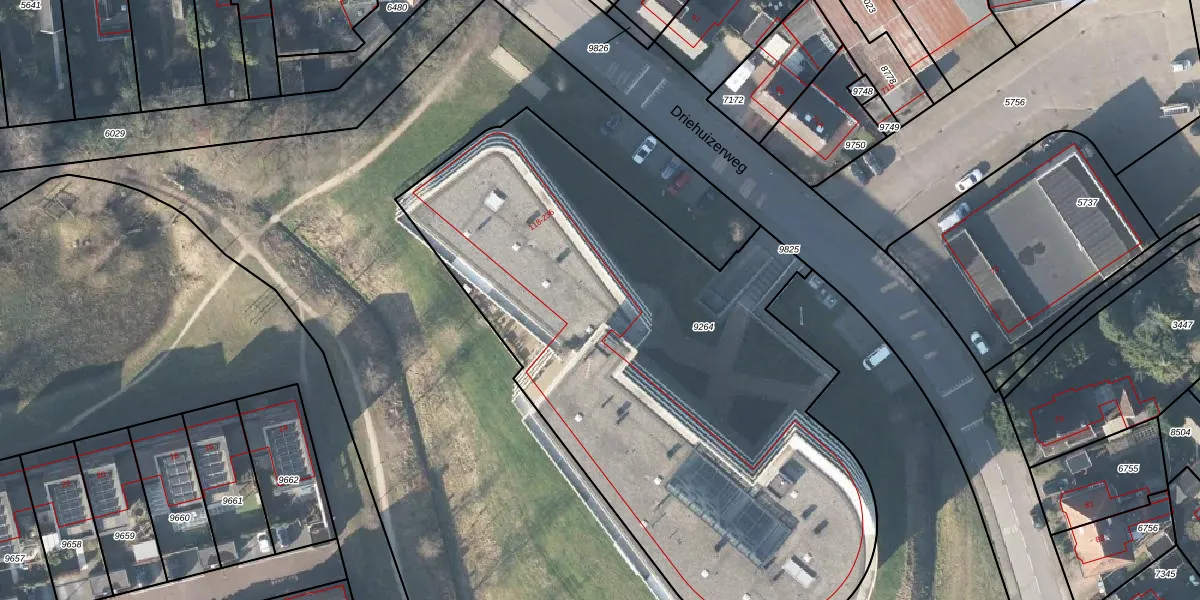 Het perceel waarop Driehuizerweg 150 staat heeft een oppervlakte van 3496 m². Dit is een zeer groot perceel. De perceeloppervlakte wordt geregistreerd door het Kadaster. Gedetailleerde informatie over de maten van dit perceel kunt u vinden in het rapport Kadastrale kaart met maatvoering van Driehuizerweg 150.
