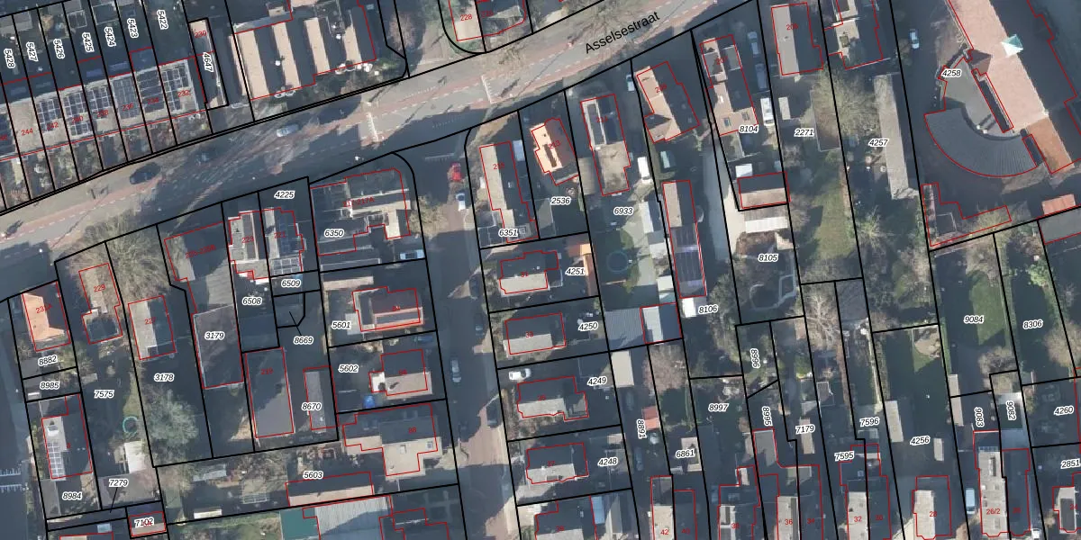 Gebruik de zoekbalk of klik op een perceel voor informatie over de adressen binnen dit perceel.