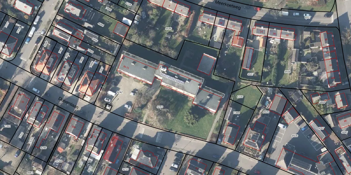 Het perceel waarop Duivenlaan 43 staat heeft een oppervlakte van 3102 m². Dit is een zeer groot perceel. De perceeloppervlakte wordt geregistreerd door het Kadaster. Gedetailleerde informatie over de maten van dit perceel kunt u vinden in het rapport Kadastrale kaart met maatvoering van Duivenlaan 43.
