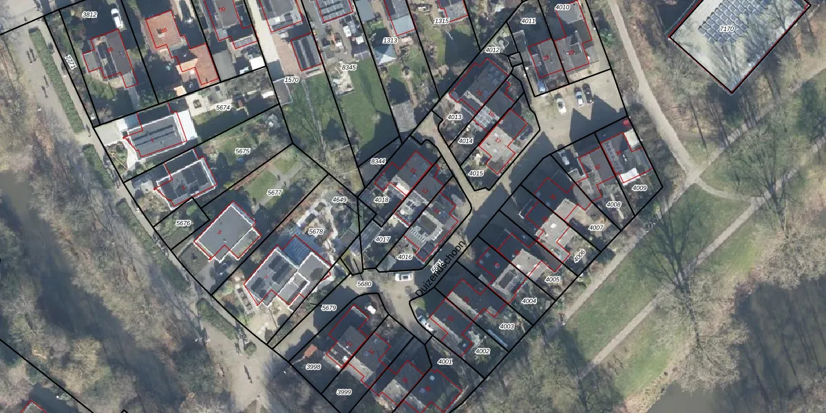 Gebruik de zoekbalk of klik op een perceel voor informatie over de adressen binnen dit perceel.