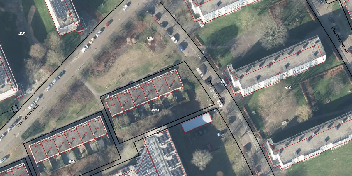 Het perceel waarop Eburonenstraat 145 staat heeft een oppervlakte van 1610 m². Dit is een zeer groot perceel. De perceeloppervlakte wordt geregistreerd door het Kadaster. Gedetailleerde informatie over de maten van dit perceel kunt u vinden in het rapport Kadastrale kaart met maatvoering van Eburonenstraat 145.