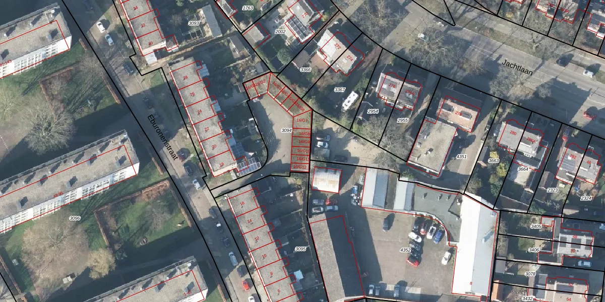 Eburonenstraat 16-G10 is gelegen op kadastraal perceel APD01V3094. Deze kadastrale aanduiding is uniek en wordt gebruikt door het Kadaster om eigendomsrechten en andere zakelijke rechten vast te leggen. Het perceel maakt onderdeel uit van de kadastrale gemeente Apeldoorn.