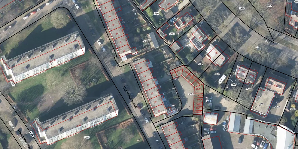Het perceel waarop Eburonenstraat 26 staat heeft een oppervlakte van 2730 m². Dit is een zeer groot perceel. De perceeloppervlakte wordt geregistreerd door het Kadaster. Gedetailleerde informatie over de maten van dit perceel kunt u vinden in het rapport Kadastrale kaart met maatvoering van Eburonenstraat 26.