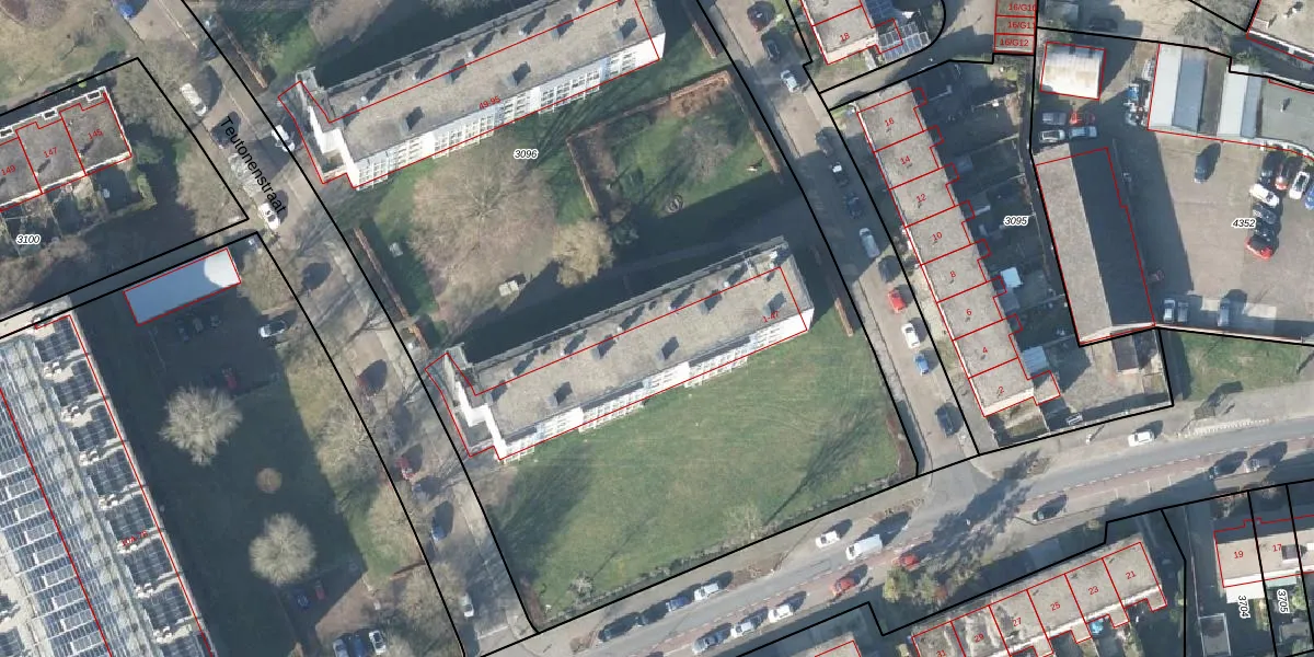 Het perceel waarop Eburonenstraat 5 staat heeft een oppervlakte van 1,0 ha. Dit is een zeer groot perceel. De perceeloppervlakte wordt geregistreerd door het Kadaster. Gedetailleerde informatie over de maten van dit perceel kunt u vinden in het rapport Kadastrale kaart met maatvoering van Eburonenstraat 5.