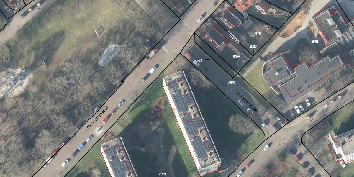 Het perceel waarop Eburonenstraat 76 staat heeft een oppervlakte van 9725 m². Dit is een zeer groot perceel. De perceeloppervlakte wordt geregistreerd door het Kadaster. Gedetailleerde informatie over de maten van dit perceel kunt u vinden in het rapport Kadastrale kaart met maatvoering van Eburonenstraat 76.