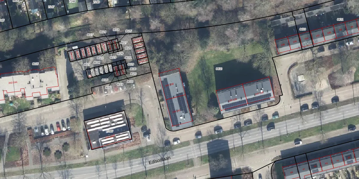 Edisonlaan 154 is gelegen op kadastraal perceel APD01I8432. Deze kadastrale aanduiding is uniek en wordt gebruikt door het Kadaster om eigendomsrechten en andere zakelijke rechten vast te leggen. Het perceel maakt onderdeel uit van de kadastrale gemeente Apeldoorn.