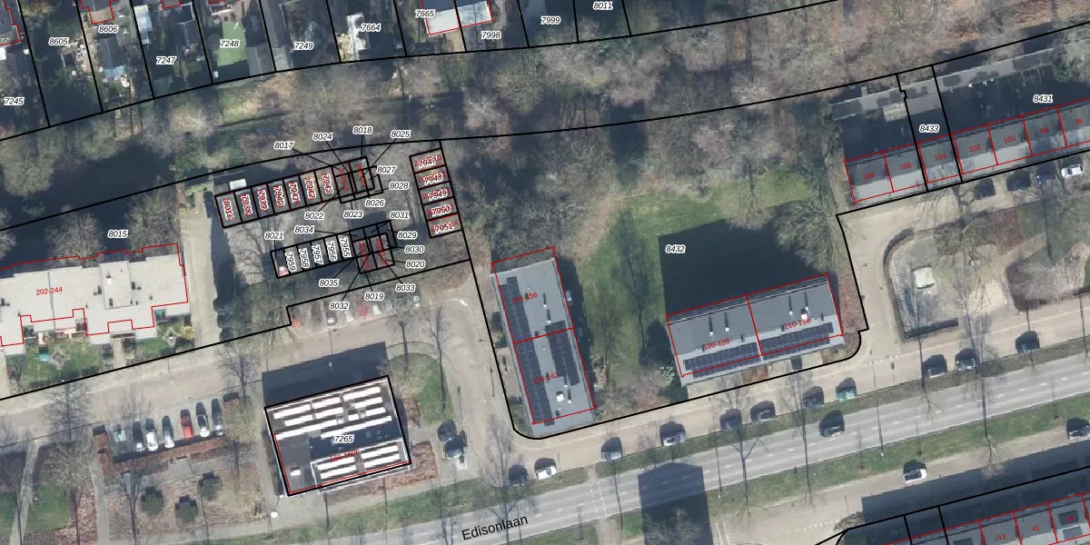 Edisonlaan 156 is gelegen op kadastraal perceel APD01I8432. Deze kadastrale aanduiding is uniek en wordt gebruikt door het Kadaster om eigendomsrechten en andere zakelijke rechten vast te leggen. Het perceel maakt onderdeel uit van de kadastrale gemeente Apeldoorn.