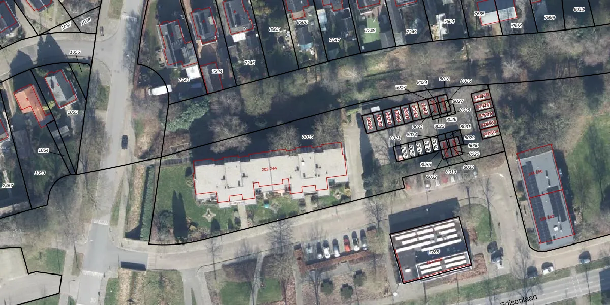 Het perceel waarop Edisonlaan 220 staat heeft een oppervlakte van 2899 m². Dit is een zeer groot perceel. De perceeloppervlakte wordt geregistreerd door het Kadaster. Gedetailleerde informatie over de maten van dit perceel kunt u vinden in het rapport Kadastrale kaart met maatvoering van Edisonlaan 220.
