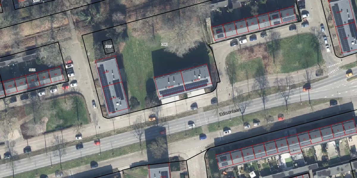 Edisonlaan 56 is gelegen op kadastraal perceel APD01I7843. Deze kadastrale aanduiding is uniek en wordt gebruikt door het Kadaster om eigendomsrechten en andere zakelijke rechten vast te leggen. Het perceel maakt onderdeel uit van de kadastrale gemeente Apeldoorn.