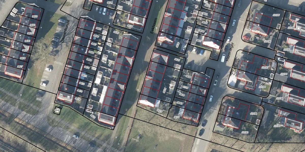 Het perceel waarop Eekhoorn 18 staat heeft een oppervlakte van 499 m². Dit is een groot perceel. De perceeloppervlakte wordt geregistreerd door het Kadaster. Gedetailleerde informatie over de maten van dit perceel kunt u vinden in het rapport Kadastrale kaart met maatvoering van Eekhoorn 18.