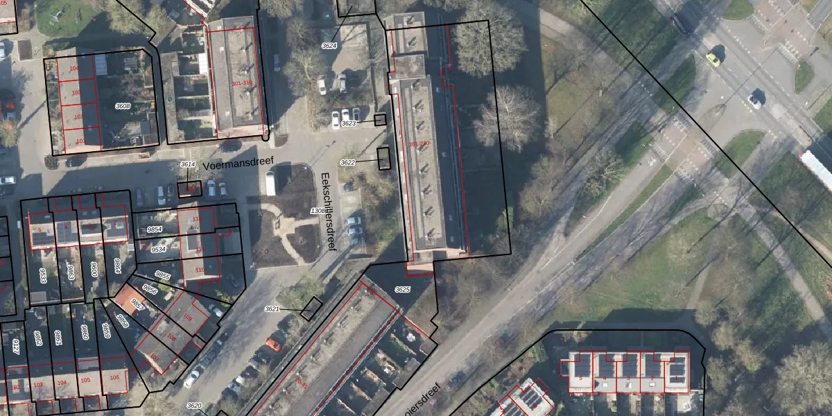 Het perceel waarop Eekschillersdreef 203 staat heeft een oppervlakte van 4195 m². Dit is een zeer groot perceel. De perceeloppervlakte wordt geregistreerd door het Kadaster. Gedetailleerde informatie over de maten van dit perceel kunt u vinden in het rapport Kadastrale kaart met maatvoering van Eekschillersdreef 203.