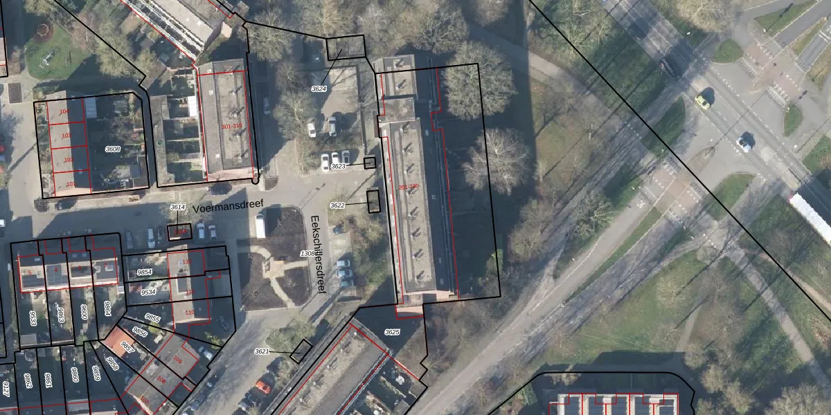 Het perceel waarop Eekschillersdreef 213 staat heeft een oppervlakte van 4195 m². Dit is een zeer groot perceel. De perceeloppervlakte wordt geregistreerd door het Kadaster. Gedetailleerde informatie over de maten van dit perceel kunt u vinden in het rapport Kadastrale kaart met maatvoering van Eekschillersdreef 213.
