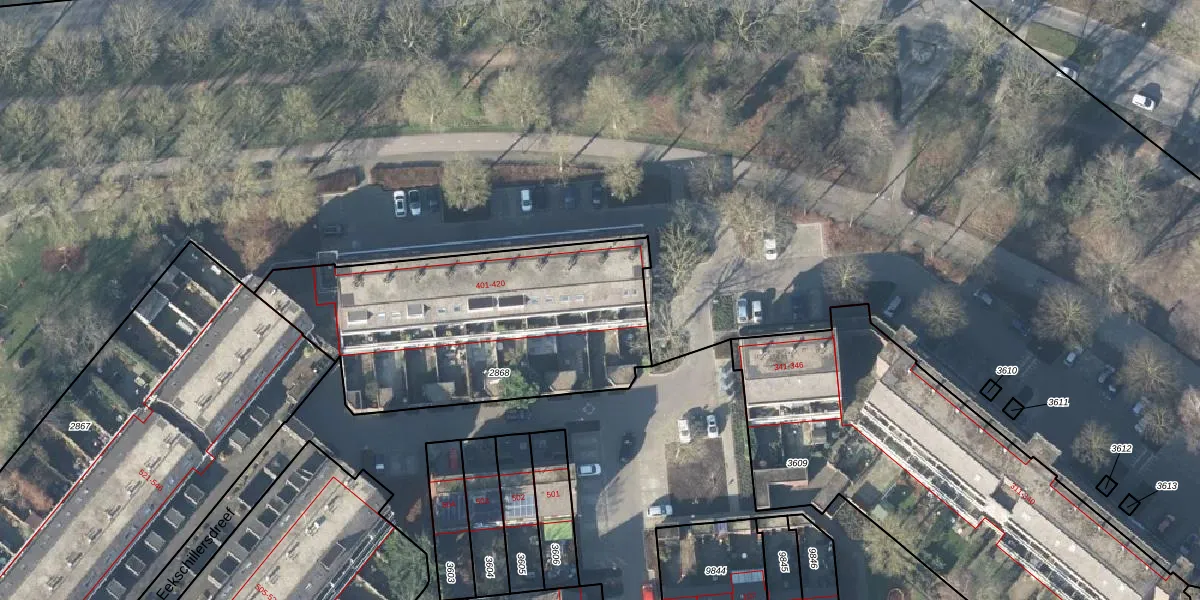 Het perceel waarop Eekschillersdreef 412 staat heeft een oppervlakte van 1410 m². Dit is een zeer groot perceel. De perceeloppervlakte wordt geregistreerd door het Kadaster. Gedetailleerde informatie over de maten van dit perceel kunt u vinden in het rapport Kadastrale kaart met maatvoering van Eekschillersdreef 412.