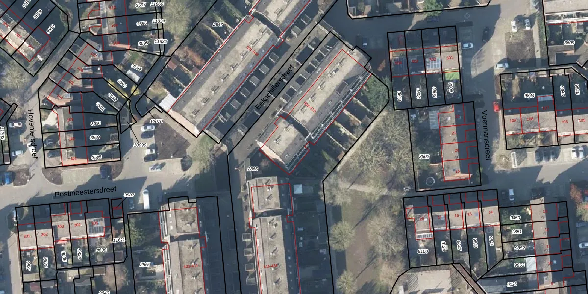 Het perceel waarop Eekschillersdreef 519 staat heeft een oppervlakte van 3360 m². Dit is een zeer groot perceel. De perceeloppervlakte wordt geregistreerd door het Kadaster. Gedetailleerde informatie over de maten van dit perceel kunt u vinden in het rapport Kadastrale kaart met maatvoering van Eekschillersdreef 519.