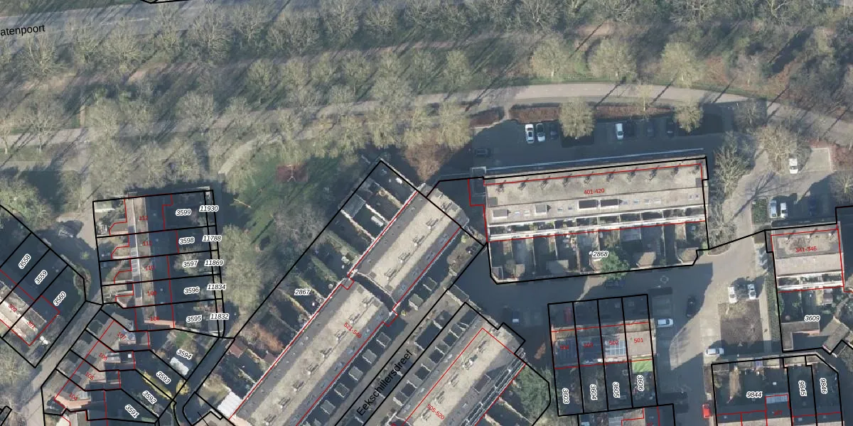 Het perceel waarop Eekschillersdreef 546 staat heeft een oppervlakte van 2160 m². Dit is een zeer groot perceel. De perceeloppervlakte wordt geregistreerd door het Kadaster. Gedetailleerde informatie over de maten van dit perceel kunt u vinden in het rapport Kadastrale kaart met maatvoering van Eekschillersdreef 546.