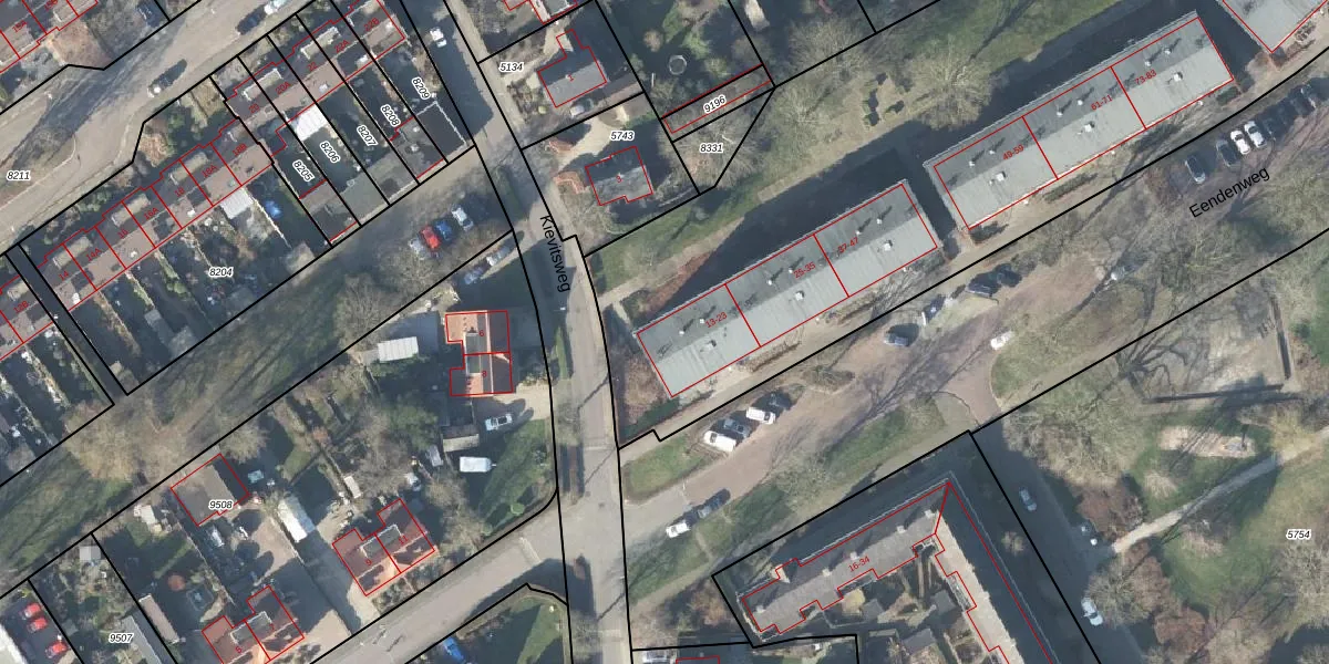 Het perceel waarop Eendenweg 17 staat heeft een oppervlakte van 6566 m². Dit is een zeer groot perceel. De perceeloppervlakte wordt geregistreerd door het Kadaster. Gedetailleerde informatie over de maten van dit perceel kunt u vinden in het rapport Kadastrale kaart met maatvoering van Eendenweg 17.