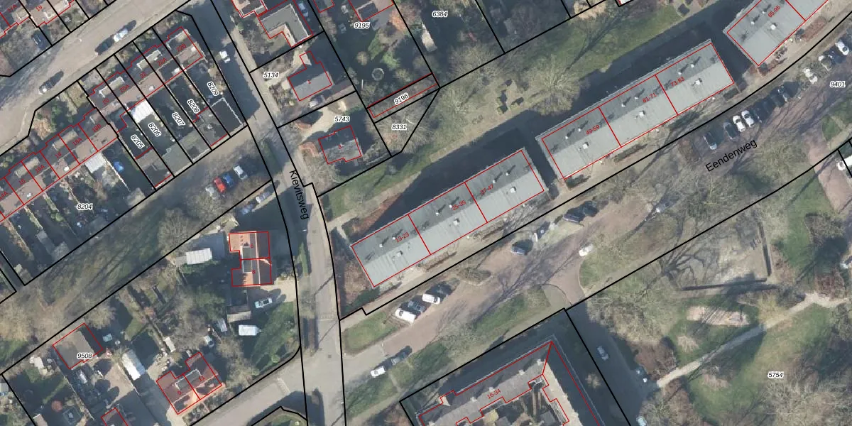 Het perceel waarop Eendenweg 29 staat heeft een oppervlakte van 6566 m². Dit is een zeer groot perceel. De perceeloppervlakte wordt geregistreerd door het Kadaster. Gedetailleerde informatie over de maten van dit perceel kunt u vinden in het rapport Kadastrale kaart met maatvoering van Eendenweg 29.