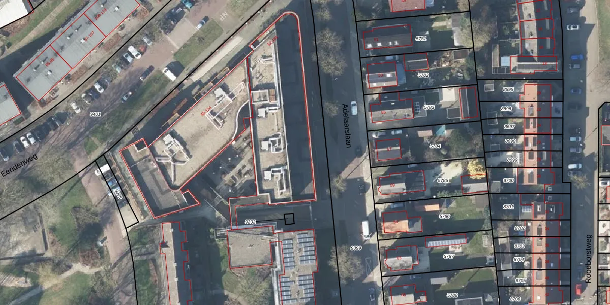 Het perceel waarop Eendenweg 60 staat heeft een oppervlakte van 9863 m². Dit is een zeer groot perceel. De perceeloppervlakte wordt geregistreerd door het Kadaster. Gedetailleerde informatie over de maten van dit perceel kunt u vinden in het rapport Kadastrale kaart met maatvoering van Eendenweg 60.
