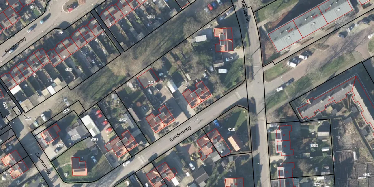 Eendenweg 9 is gelegen op kadastraal perceel APD01N9508. Deze kadastrale aanduiding is uniek en wordt gebruikt door het Kadaster om eigendomsrechten en andere zakelijke rechten vast te leggen. Het perceel maakt onderdeel uit van de kadastrale gemeente Apeldoorn.