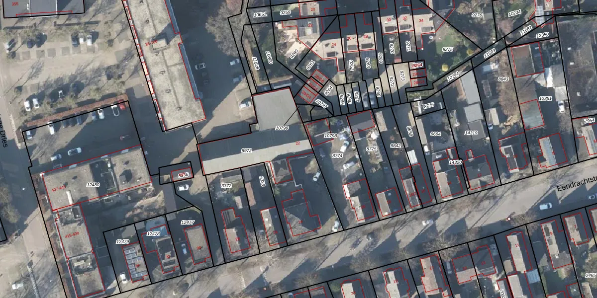 Het perceel waarop Eendrachtstraat 22 staat heeft een oppervlakte van 1104 m². Dit is een zeer groot perceel. De perceeloppervlakte wordt geregistreerd door het Kadaster. Gedetailleerde informatie over de maten van dit perceel kunt u vinden in het rapport Kadastrale kaart met maatvoering van Eendrachtstraat 22.