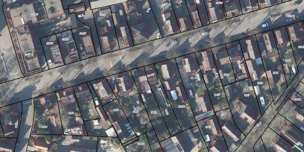 Eendrachtstraat 25 is gelegen op kadastraal perceel APD01L9952. Deze kadastrale aanduiding is uniek en wordt gebruikt door het Kadaster om eigendomsrechten en andere zakelijke rechten vast te leggen. Het perceel maakt onderdeel uit van de kadastrale gemeente Apeldoorn.
