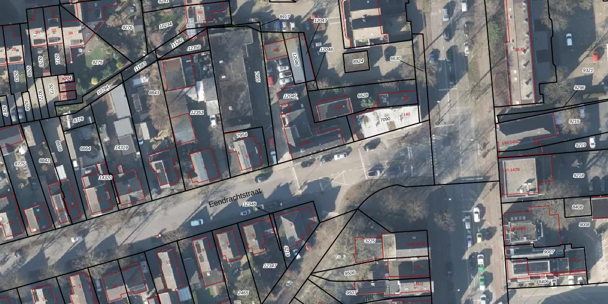 Het perceel waarop Eendrachtstraat 4-D staat heeft een oppervlakte van 569 m². Dit is een groot perceel. De perceeloppervlakte wordt geregistreerd door het Kadaster. Gedetailleerde informatie over de maten van dit perceel kunt u vinden in het rapport Kadastrale kaart met maatvoering van Eendrachtstraat 4-D.