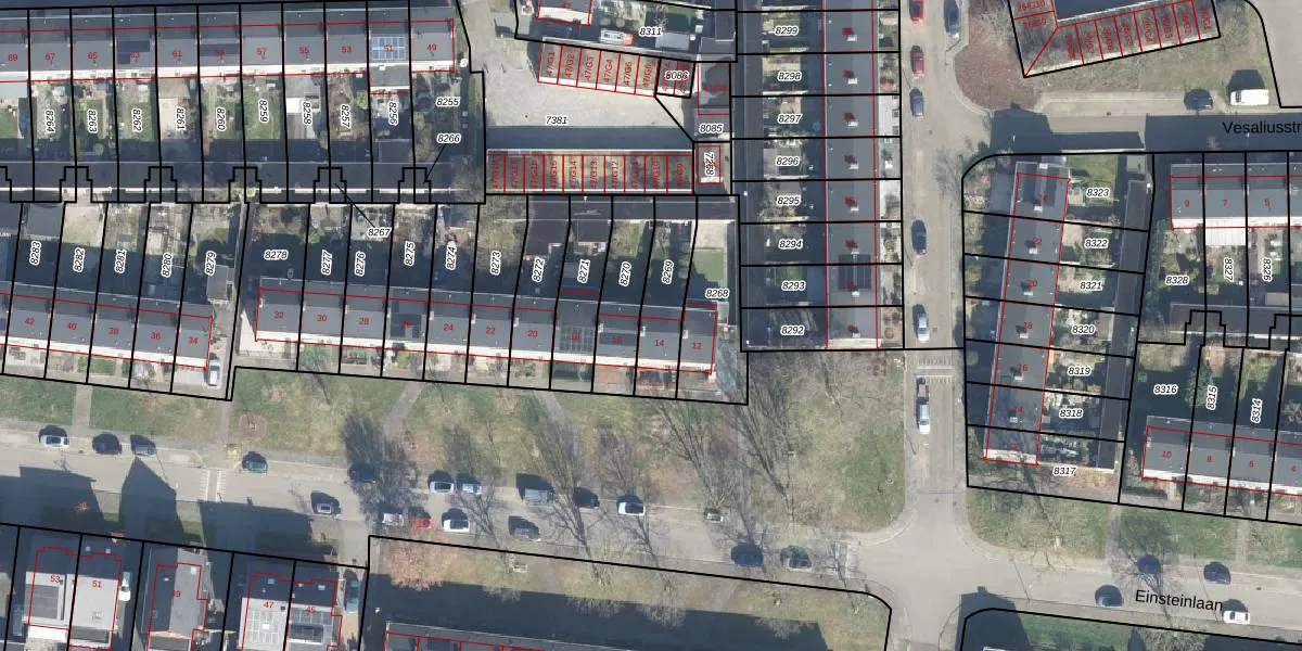 Gebruik de zoekbalk of klik op een perceel voor informatie over de adressen binnen dit perceel.