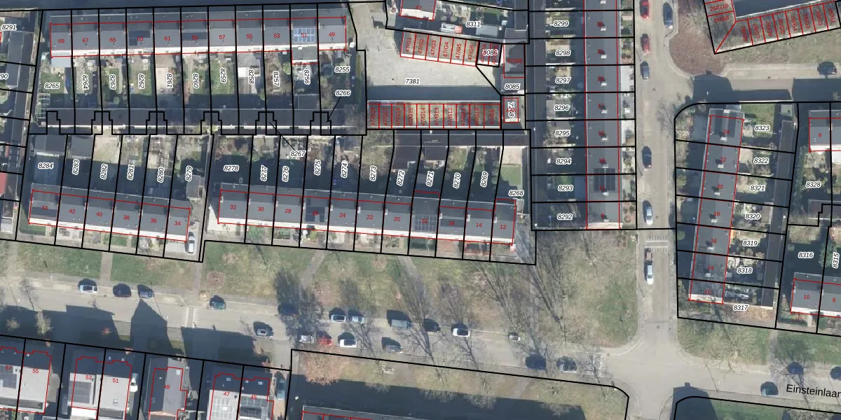Einsteinlaan 18 is gelegen op kadastraal perceel APD01I8271. Deze kadastrale aanduiding is uniek en wordt gebruikt door het Kadaster om eigendomsrechten en andere zakelijke rechten vast te leggen. Het perceel maakt onderdeel uit van de kadastrale gemeente Apeldoorn.