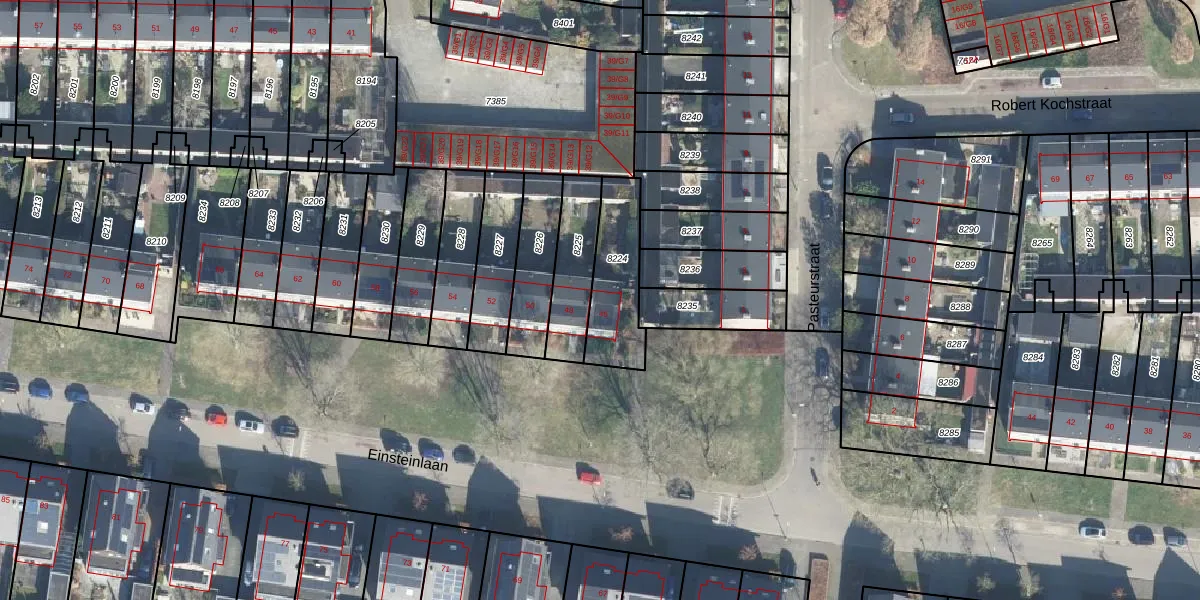 Gebruik de zoekbalk of klik op een perceel voor informatie over de adressen binnen dit perceel.