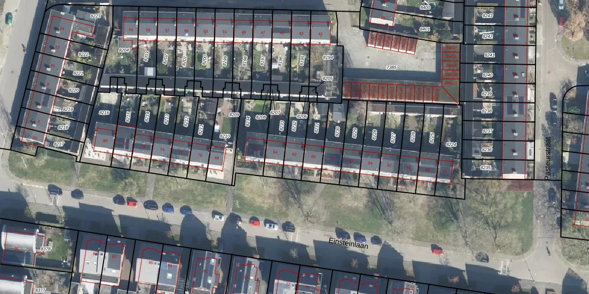 Gebruik de zoekbalk of klik op een perceel voor informatie over de adressen binnen dit perceel.