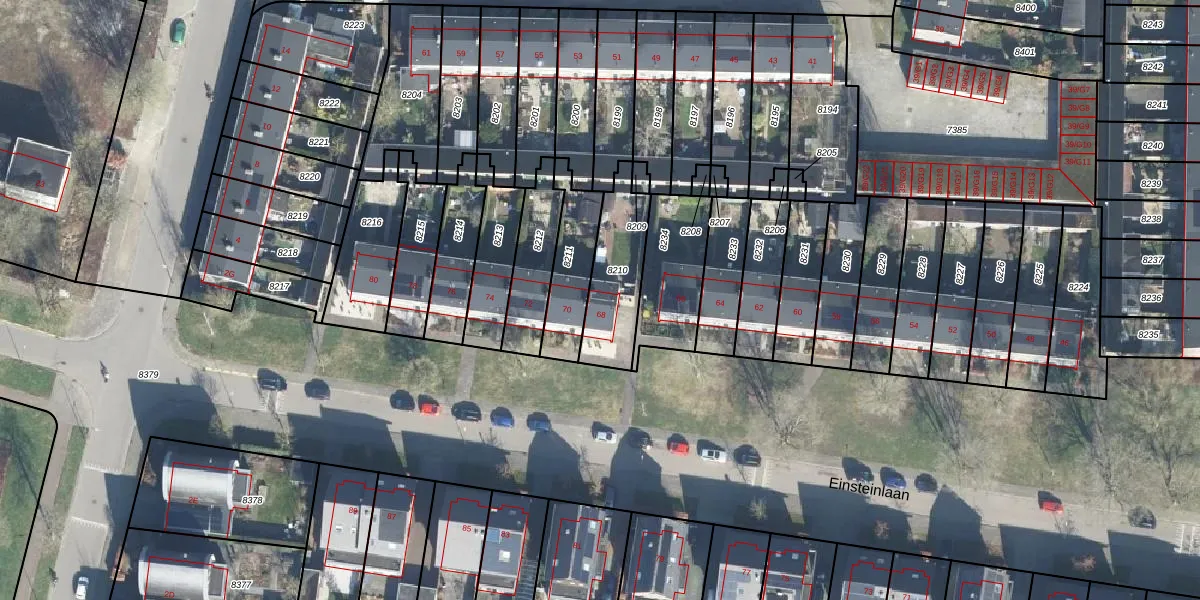 Het perceel waarop Einsteinlaan 68 staat heeft een oppervlakte van 260 m². Dit is een middelgroot perceel. De perceeloppervlakte wordt geregistreerd door het Kadaster. Gedetailleerde informatie over de maten van dit perceel kunt u vinden in het rapport Kadastrale kaart met maatvoering van Einsteinlaan 68.