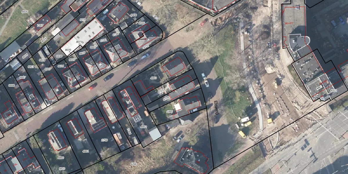 Gebruik de zoekbalk of klik op een perceel voor informatie over de adressen binnen dit perceel.