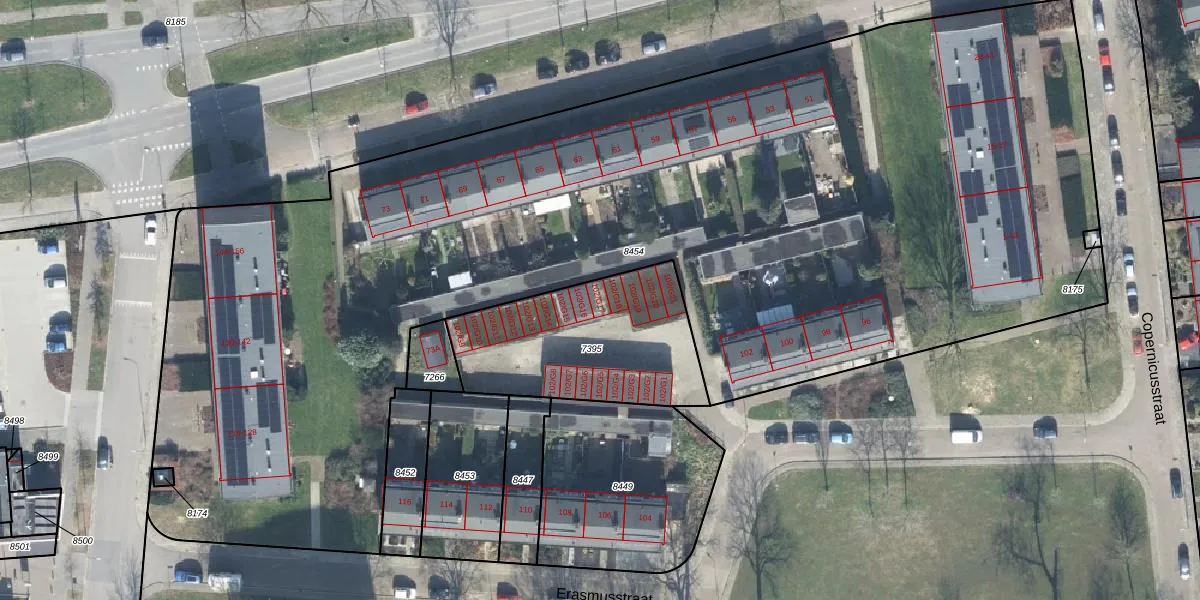 Het perceel waarop Erasmusstraat 102-G17 staat heeft een oppervlakte van 748 m². Dit is een groot perceel. De perceeloppervlakte wordt geregistreerd door het Kadaster. Gedetailleerde informatie over de maten van dit perceel kunt u vinden in het rapport Kadastrale kaart met maatvoering van Erasmusstraat 102-G17.