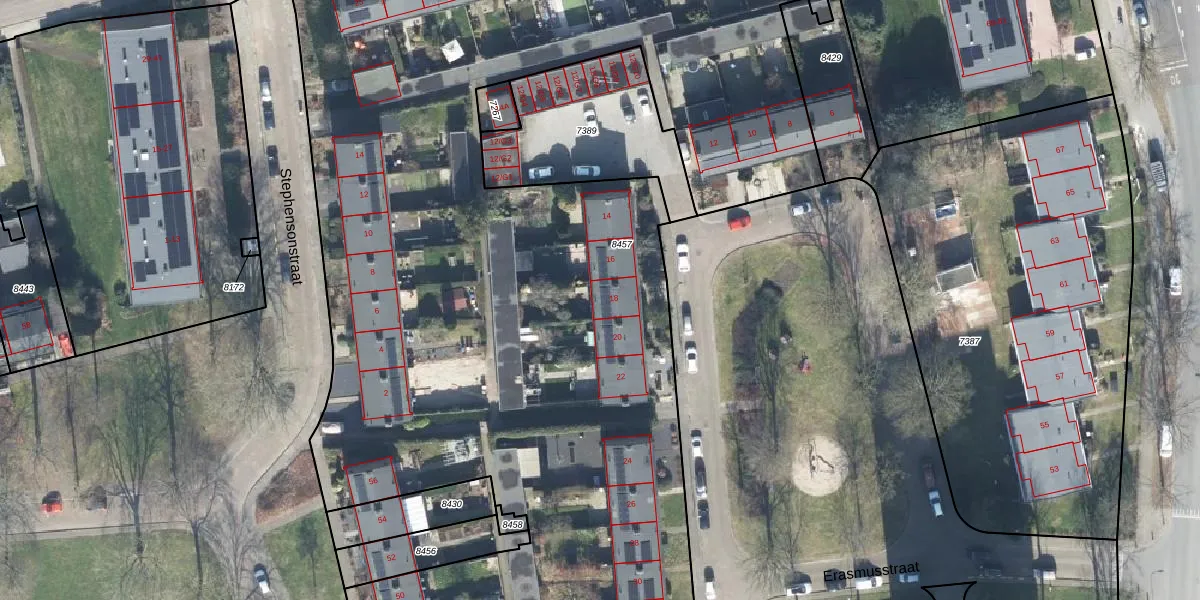 Erasmusstraat 18 is gelegen op kadastraal perceel APD01I8457. Deze kadastrale aanduiding is uniek en wordt gebruikt door het Kadaster om eigendomsrechten en andere zakelijke rechten vast te leggen. Het perceel maakt onderdeel uit van de kadastrale gemeente Apeldoorn.