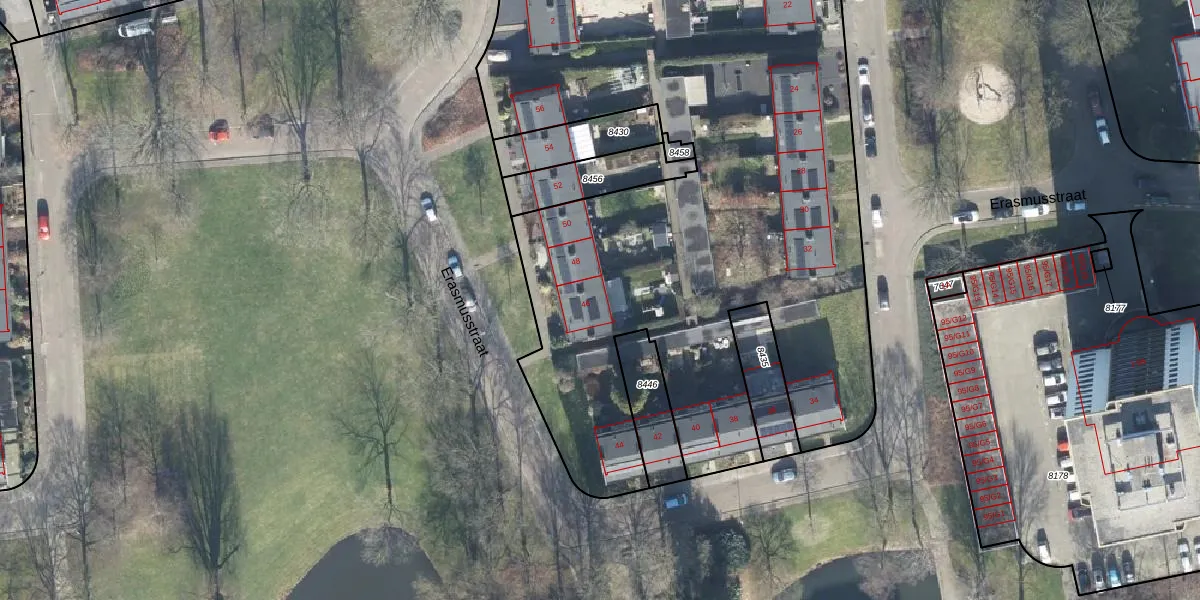 Erasmusstraat 46 is gelegen op kadastraal perceel APD01I8457. Deze kadastrale aanduiding is uniek en wordt gebruikt door het Kadaster om eigendomsrechten en andere zakelijke rechten vast te leggen. Het perceel maakt onderdeel uit van de kadastrale gemeente Apeldoorn.