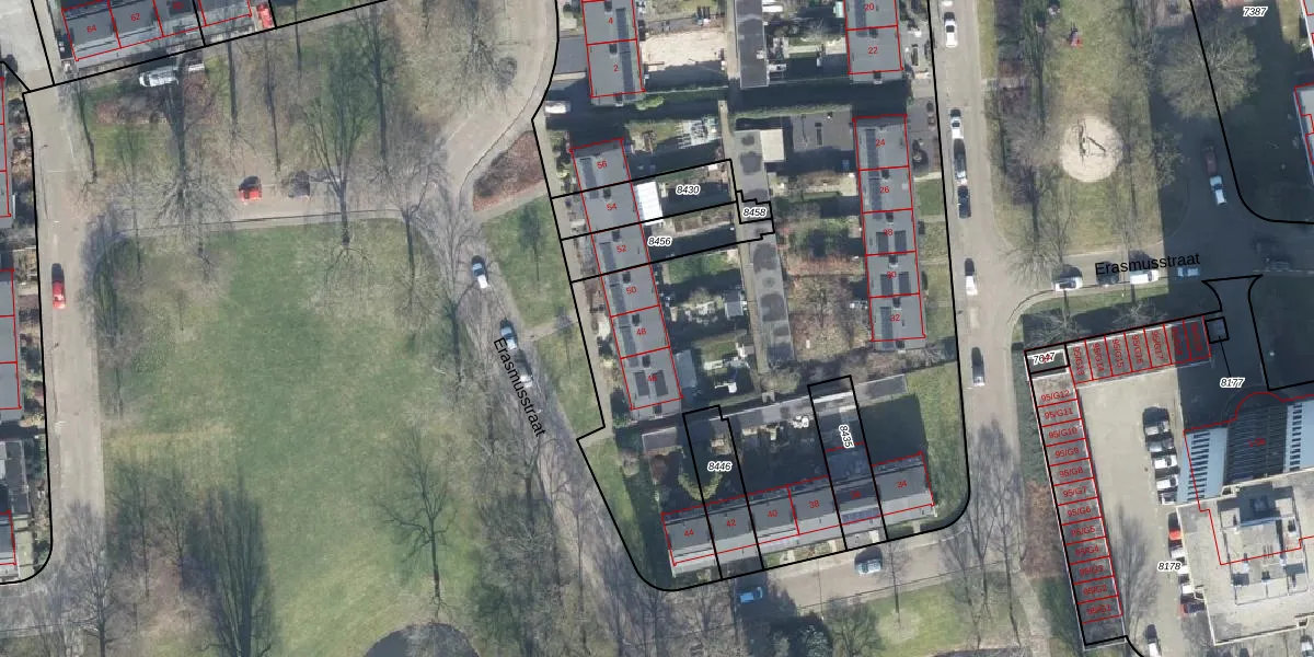 Erasmusstraat 48 is gelegen op kadastraal perceel APD01I8457. Deze kadastrale aanduiding is uniek en wordt gebruikt door het Kadaster om eigendomsrechten en andere zakelijke rechten vast te leggen. Het perceel maakt onderdeel uit van de kadastrale gemeente Apeldoorn.