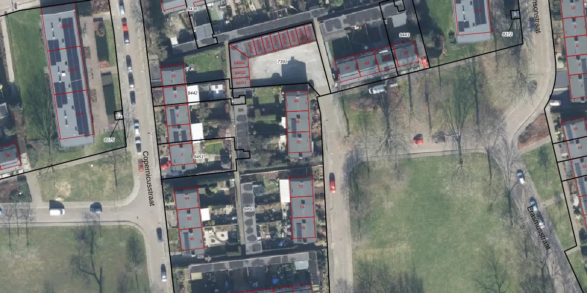 Het perceel waarop Erasmusstraat 70 staat heeft een oppervlakte van 3900 m². Dit is een zeer groot perceel. De perceeloppervlakte wordt geregistreerd door het Kadaster. Gedetailleerde informatie over de maten van dit perceel kunt u vinden in het rapport Kadastrale kaart met maatvoering van Erasmusstraat 70.