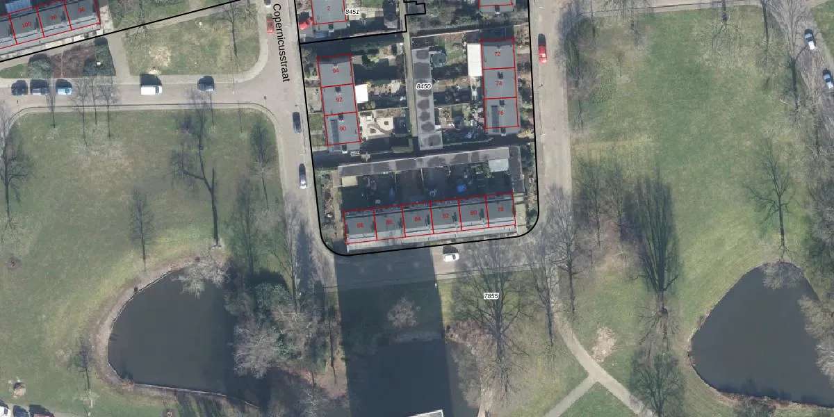 Het perceel waarop Erasmusstraat 84 staat heeft een oppervlakte van 3900 m². Dit is een zeer groot perceel. De perceeloppervlakte wordt geregistreerd door het Kadaster. Gedetailleerde informatie over de maten van dit perceel kunt u vinden in het rapport Kadastrale kaart met maatvoering van Erasmusstraat 84.