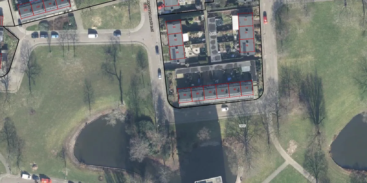 Het perceel waarop Erasmusstraat 88 staat heeft een oppervlakte van 3900 m². Dit is een zeer groot perceel. De perceeloppervlakte wordt geregistreerd door het Kadaster. Gedetailleerde informatie over de maten van dit perceel kunt u vinden in het rapport Kadastrale kaart met maatvoering van Erasmusstraat 88.