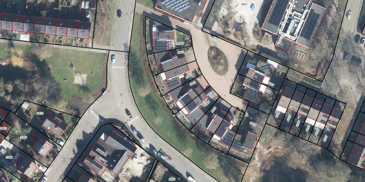 Gebruik de zoekbalk of klik op een perceel voor informatie over de adressen binnen dit perceel.