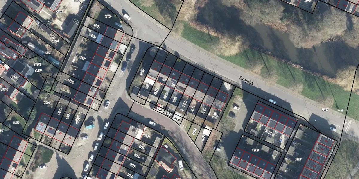 Het perceel waarop Ereprijs 19 staat heeft een oppervlakte van 165 m². Dit is een middelgroot perceel. De perceeloppervlakte wordt geregistreerd door het Kadaster. Gedetailleerde informatie over de maten van dit perceel kunt u vinden in het rapport Kadastrale kaart met maatvoering van Ereprijs 19.