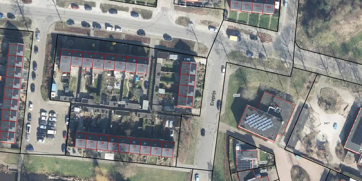Het perceel waarop Ereprijs 33 staat heeft een oppervlakte van 4720 m². Dit is een zeer groot perceel. De perceeloppervlakte wordt geregistreerd door het Kadaster. Gedetailleerde informatie over de maten van dit perceel kunt u vinden in het rapport Kadastrale kaart met maatvoering van Ereprijs 33.
