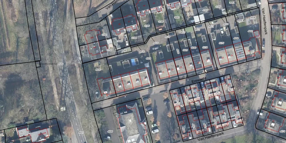 Het perceel waarop Erewacht 9 staat heeft een oppervlakte van 1400 m². Dit is een zeer groot perceel. De perceeloppervlakte wordt geregistreerd door het Kadaster. Gedetailleerde informatie over de maten van dit perceel kunt u vinden in het rapport Kadastrale kaart met maatvoering van Erewacht 9.