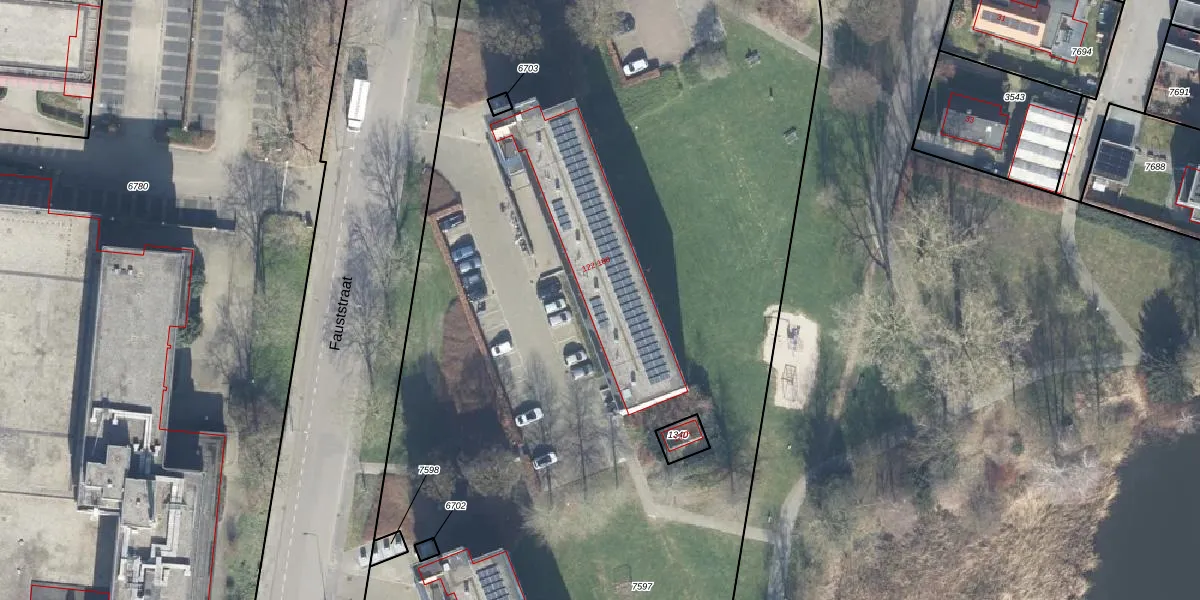 Het perceel waarop Fauststraat 126 staat heeft een oppervlakte van 1,7 ha. Dit is een zeer groot perceel. De perceeloppervlakte wordt geregistreerd door het Kadaster. Gedetailleerde informatie over de maten van dit perceel kunt u vinden in het rapport Kadastrale kaart met maatvoering van Fauststraat 126.