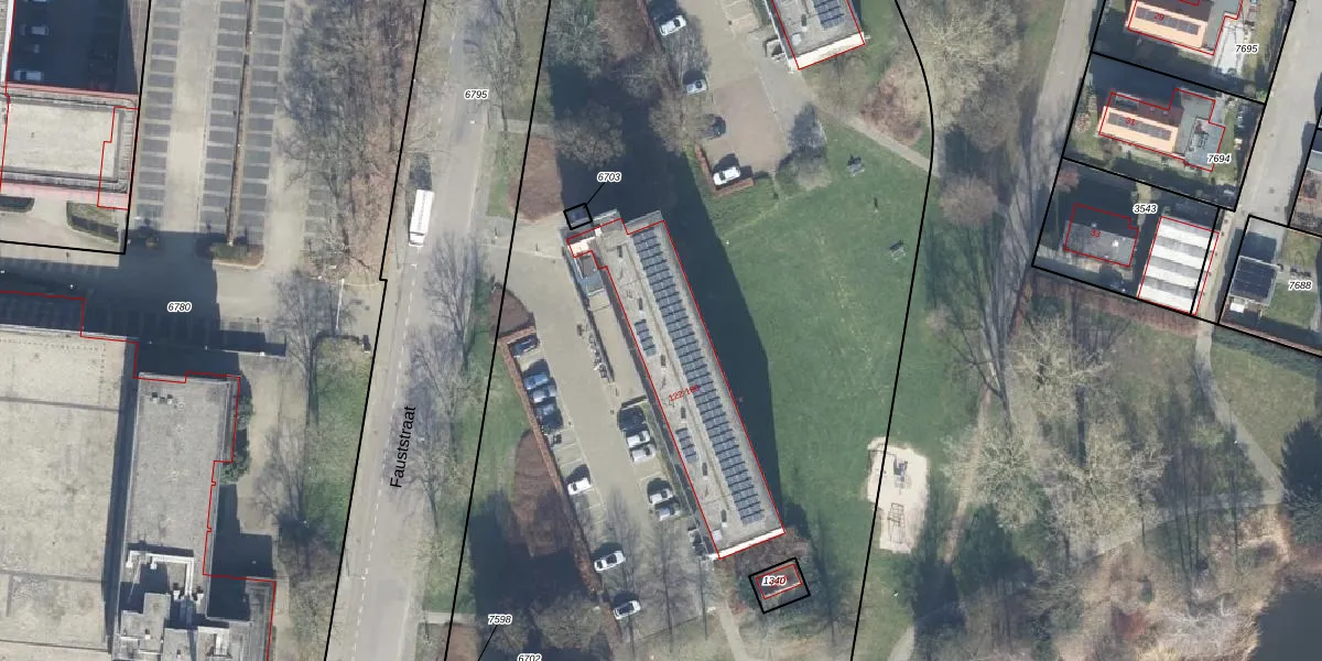 Het perceel waarop Fauststraat 142 staat heeft een oppervlakte van 1,7 ha. Dit is een zeer groot perceel. De perceeloppervlakte wordt geregistreerd door het Kadaster. Gedetailleerde informatie over de maten van dit perceel kunt u vinden in het rapport Kadastrale kaart met maatvoering van Fauststraat 142.