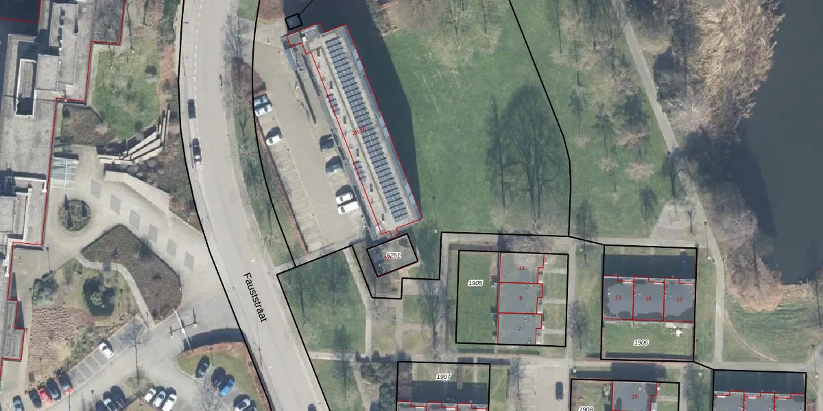 Het perceel waarop Fauststraat 50 staat heeft een oppervlakte van 1,7 ha. Dit is een zeer groot perceel. De perceeloppervlakte wordt geregistreerd door het Kadaster. Gedetailleerde informatie over de maten van dit perceel kunt u vinden in het rapport Kadastrale kaart met maatvoering van Fauststraat 50.
