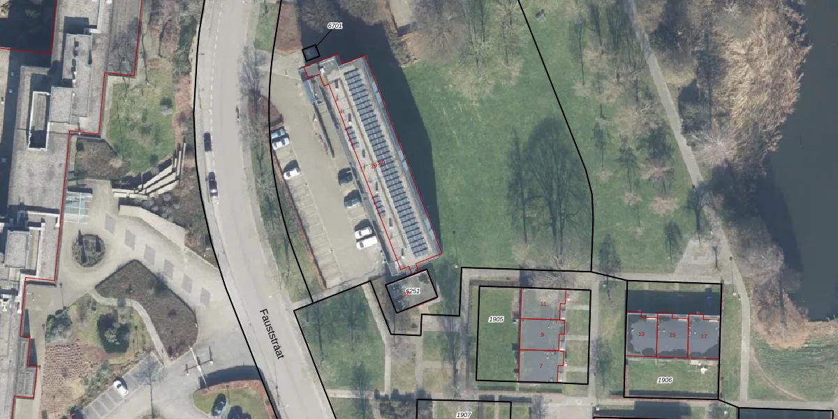 Het perceel waarop Fauststraat 52 staat heeft een oppervlakte van 1,7 ha. Dit is een zeer groot perceel. De perceeloppervlakte wordt geregistreerd door het Kadaster. Gedetailleerde informatie over de maten van dit perceel kunt u vinden in het rapport Kadastrale kaart met maatvoering van Fauststraat 52.