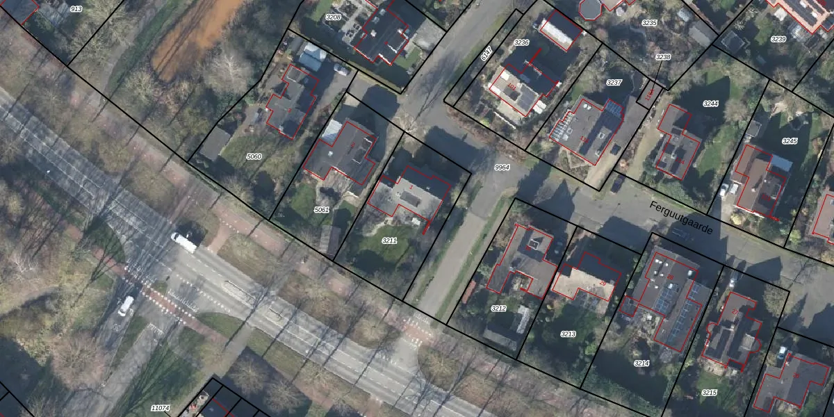 Het perceel waarop Ferguutgaarde 1 staat heeft een oppervlakte van 672 m². Dit is een groot perceel. De perceeloppervlakte wordt geregistreerd door het Kadaster. Gedetailleerde informatie over de maten van dit perceel kunt u vinden in het rapport Kadastrale kaart met maatvoering van Ferguutgaarde 1.